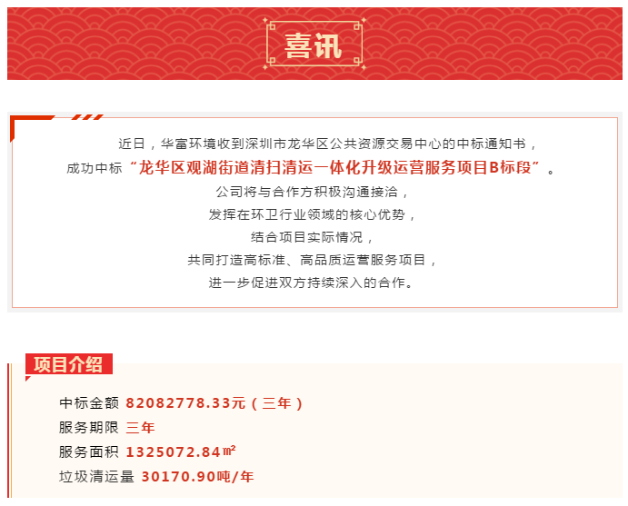 喜讯 | 稳步拓展——丝瓜视频入口在线播放环境中标龙华区观湖街道清扫清运一体化升级运营服务项目B标段