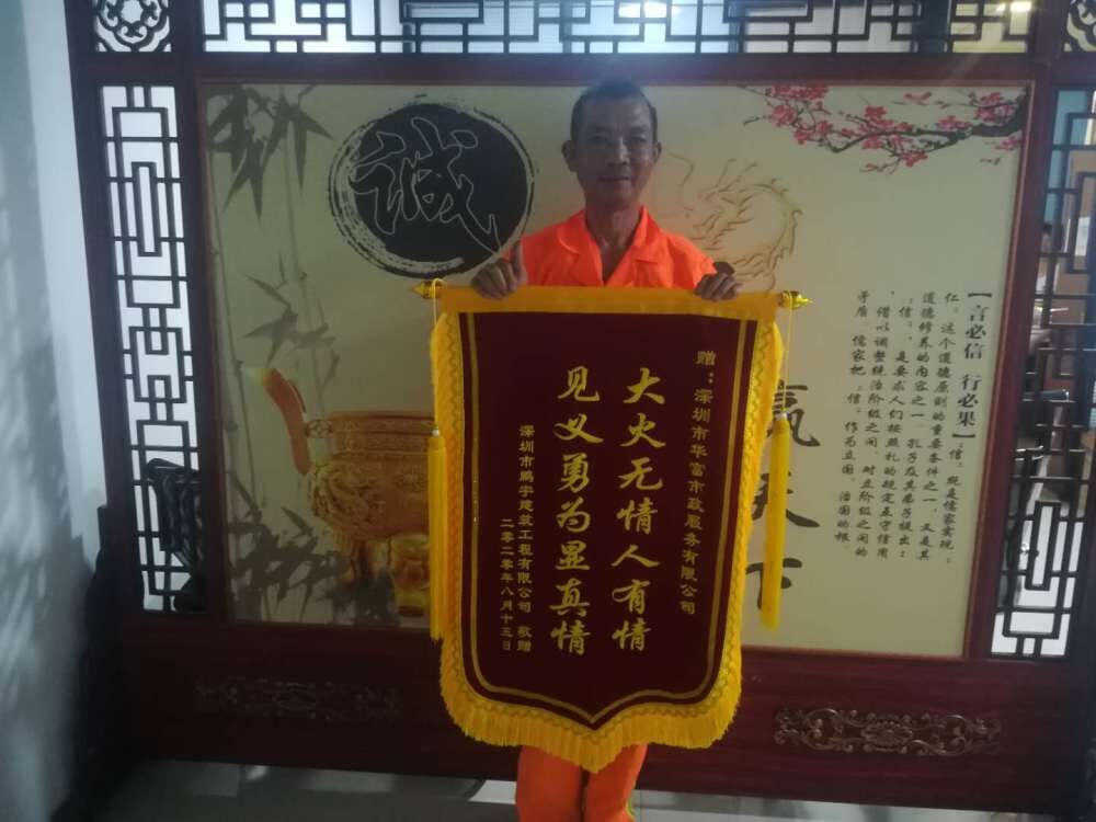 事情发生后,丝瓜视频入口在线播放环境南山项目收到一份特殊的谢礼——“见义勇为显真情,大火无情人有情”的锦旗。这枚锦旗来自深圳市鹏宇建筑工程有限公司,该公司两名员工特意上门致谢,感谢丝瓜视频入口在线播放环境南山项目的黄绍山司机及时扑灭冒浓烟的泥头车。