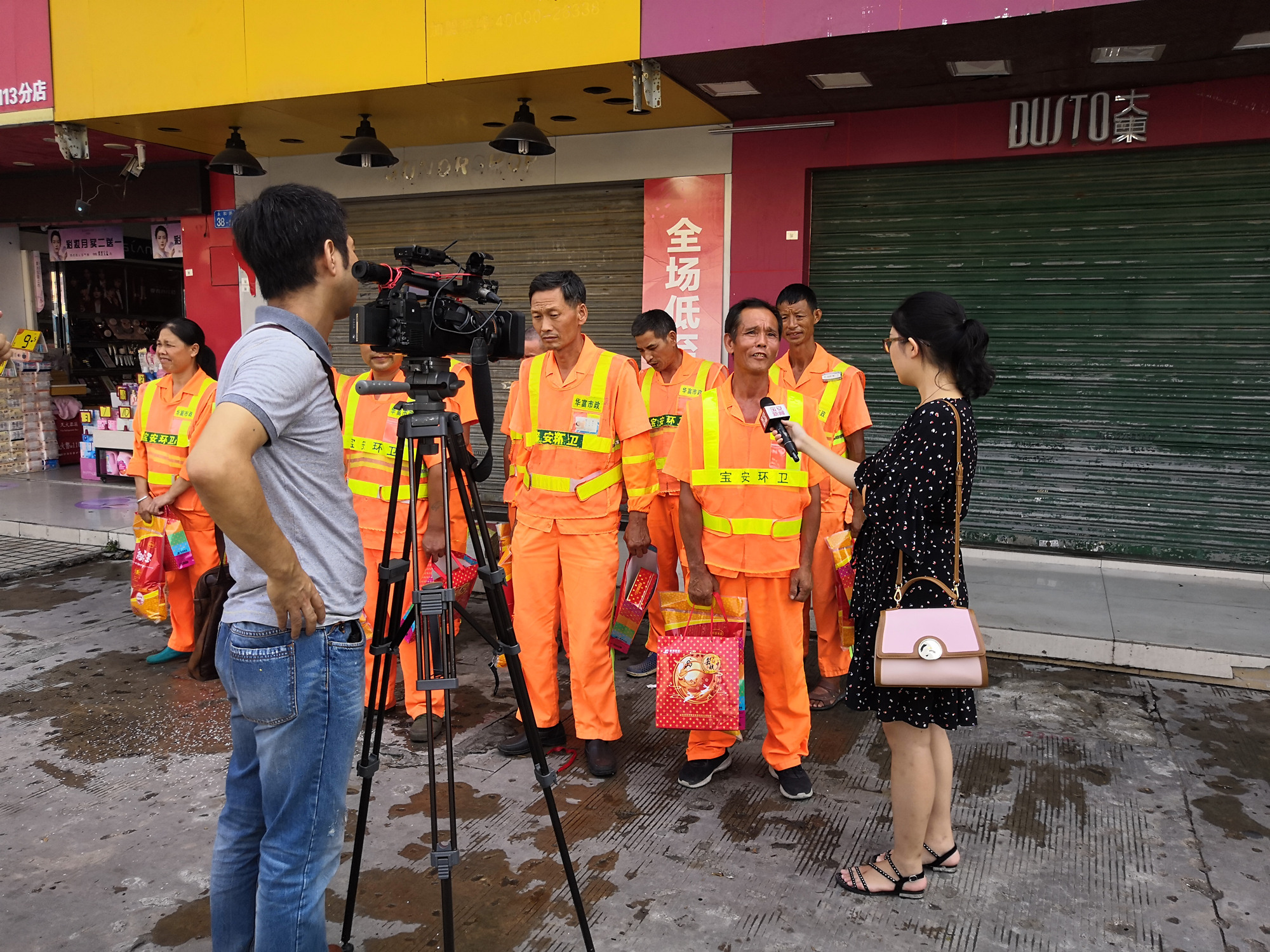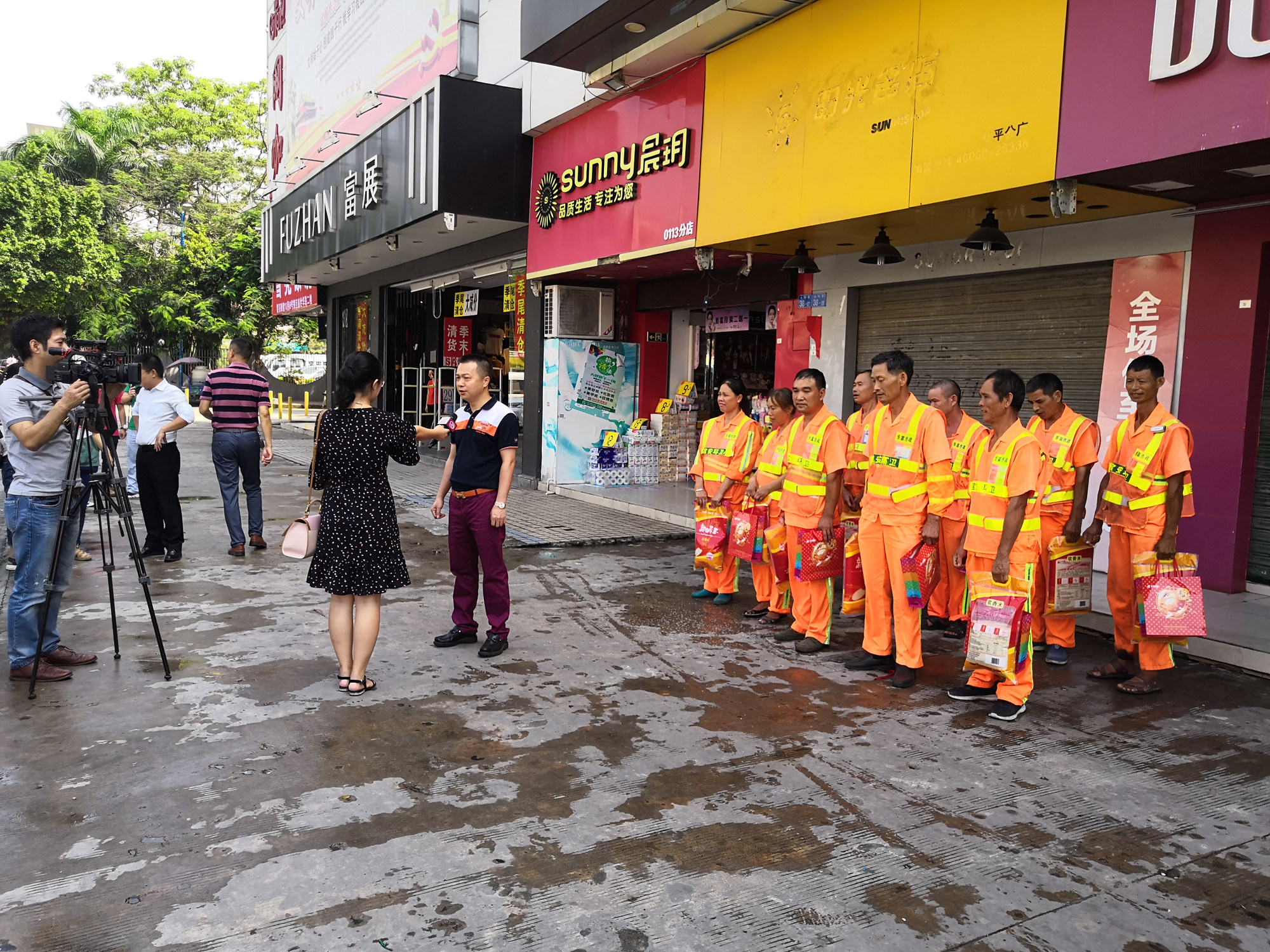 2018年9月18日,深圳电视台采访福海商会中秋佳节慰问我公司一线环卫工人。