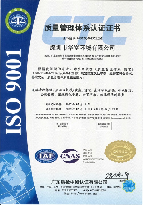 质量管理体系认证证书
