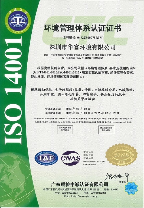 环境管理体系认证证书