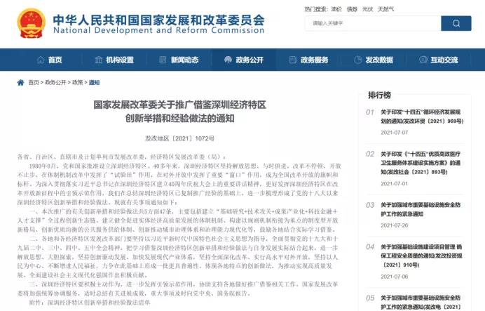 三、深圳经济特区要积极主动作为,进一步发挥引领示范作用,协助支持各地做好推广借鉴相关工作。国家发展改革委将加强统筹协调服务,适时总结有关进展成效,重大事项及时向党中央、国务院报告。