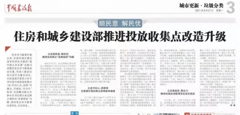 2016年以来,住房和城乡建设部深入贯彻落实习近平总书记关于垃圾分类的重要指示批示精神,全力推进生活垃圾分类工作,取得了实质性成效。46个重点城市生活垃圾分类工作正在深化,17.6万个小区开展了生活垃圾分类工作,覆盖居民9100万户,居民小区覆盖率达到97.1%。但同时也发现,一些已开展生活垃圾分类的居民小区仍存在投放环境差的问题。