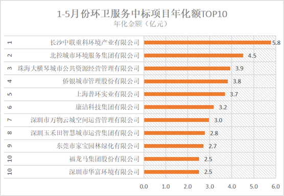 其中,盈峰环境旗下中联环境以年化总额5.8亿元排名第一,北控城市服务以4.5亿元紧随其后,大横琴城资几乎是凭借横琴粤澳深度合作区一个项目之力,轻松进入前三。
