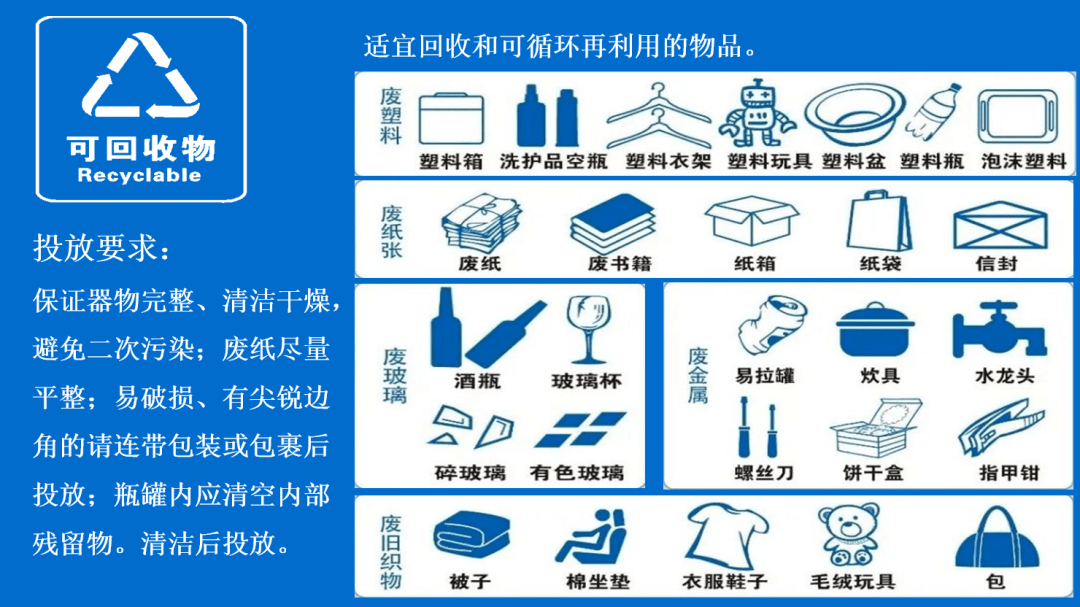 可回收物的回收频率也有了统一标准。管理规范提出,采用流动回收方式的居住小区回收频率不低于每周一次,农村地区回收频率不低于每月一次。可回收物应分类存放、码放整齐,及时清运。流动交投点采用电话、网络预约方式的,应保持预约渠道畅通,按照约定提供回收服务。应将分类后的可回收物及时转运至可回收物中转站或再生资源分拣中心。