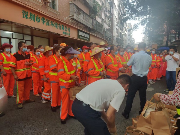 2022年5月25日,观湖街道领导慰问一线环卫工人,发放端午节物资。