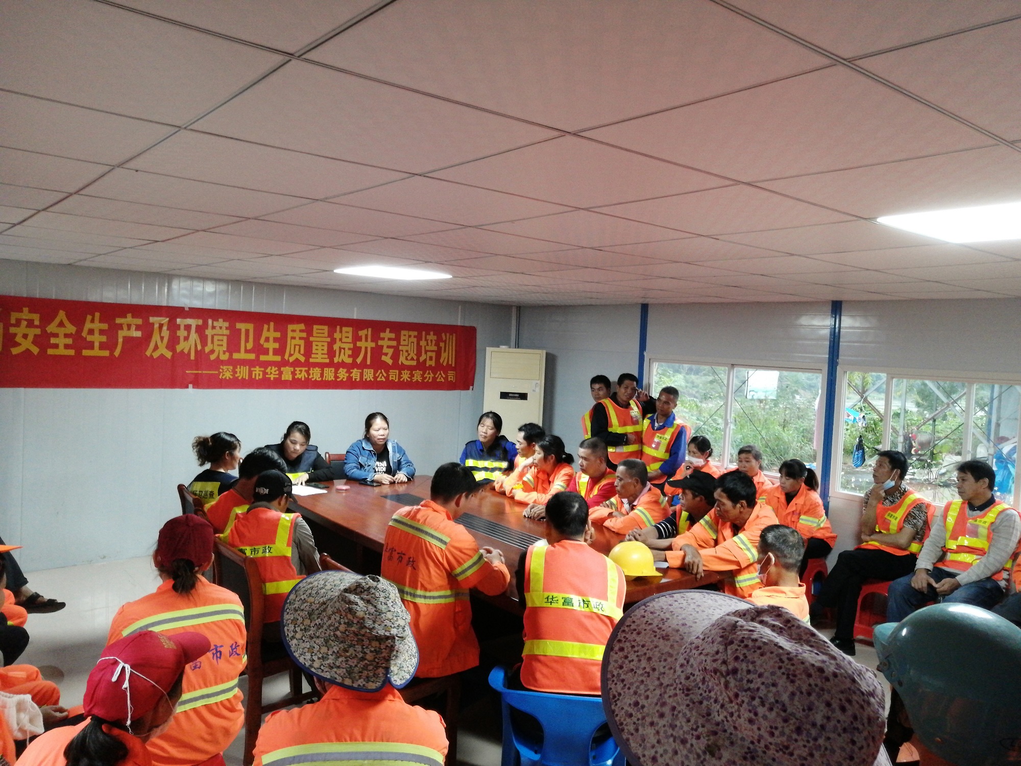 2020年9月26日来宾项目国庆安排会议 会议议题: 1、加强员工交通安全防范意识,作业现场注意安全。 2、提高现场卫生质量,加强巡查各岗位,提升管理能力。 3、人工冲洗路面,注意路面安全。 4、国庆假期要加强环境卫生保障工作,做好应急处置准备,确保发生突发事件,第一时间处置。